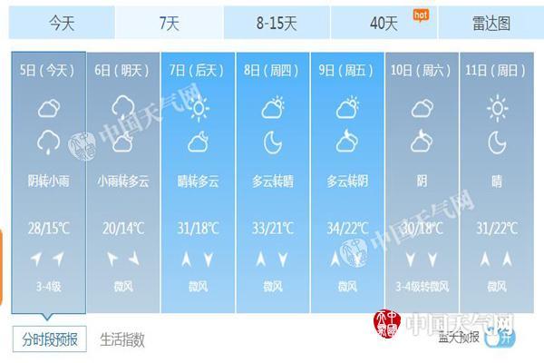中国天气网讯 今天(5日)开始,进入“芒种”节气。预计,今天夜间至明天白天北京将出现小雨天气,受降雨影响,北京气温将大幅下滑,明天最高气温仅20℃。高考临近,考生需注意及时添衣保暖,以防感冒侵扰。